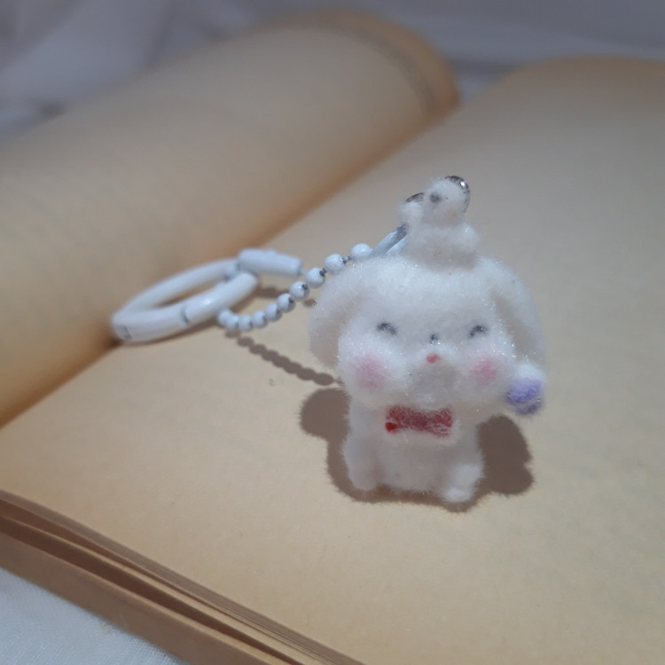آویز کیف فانتزی عروسکی طرح خرگوش پشمالو سفید، کیوت و سبک، مناسب کیف، کولهپشتی و هدیه دخترانه.