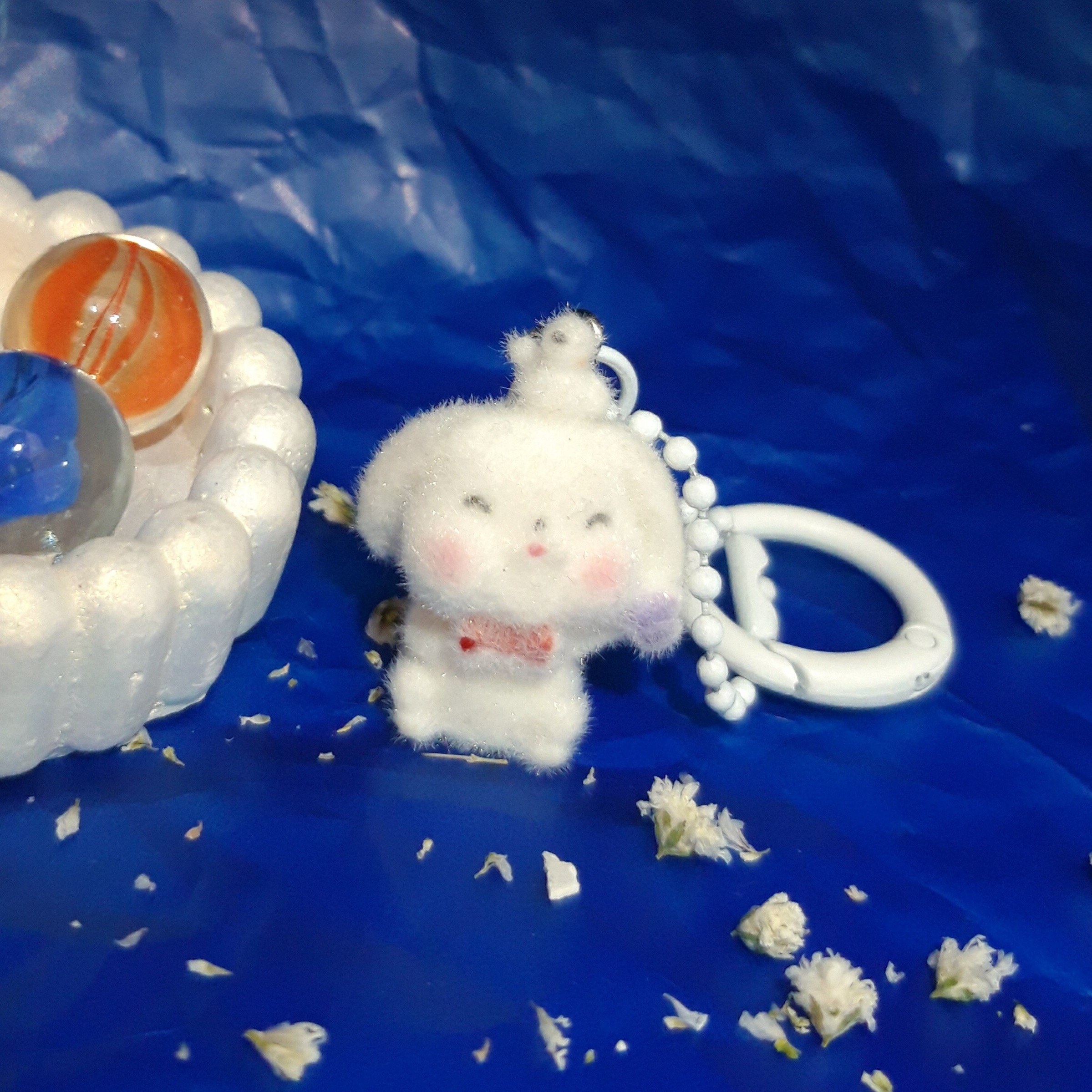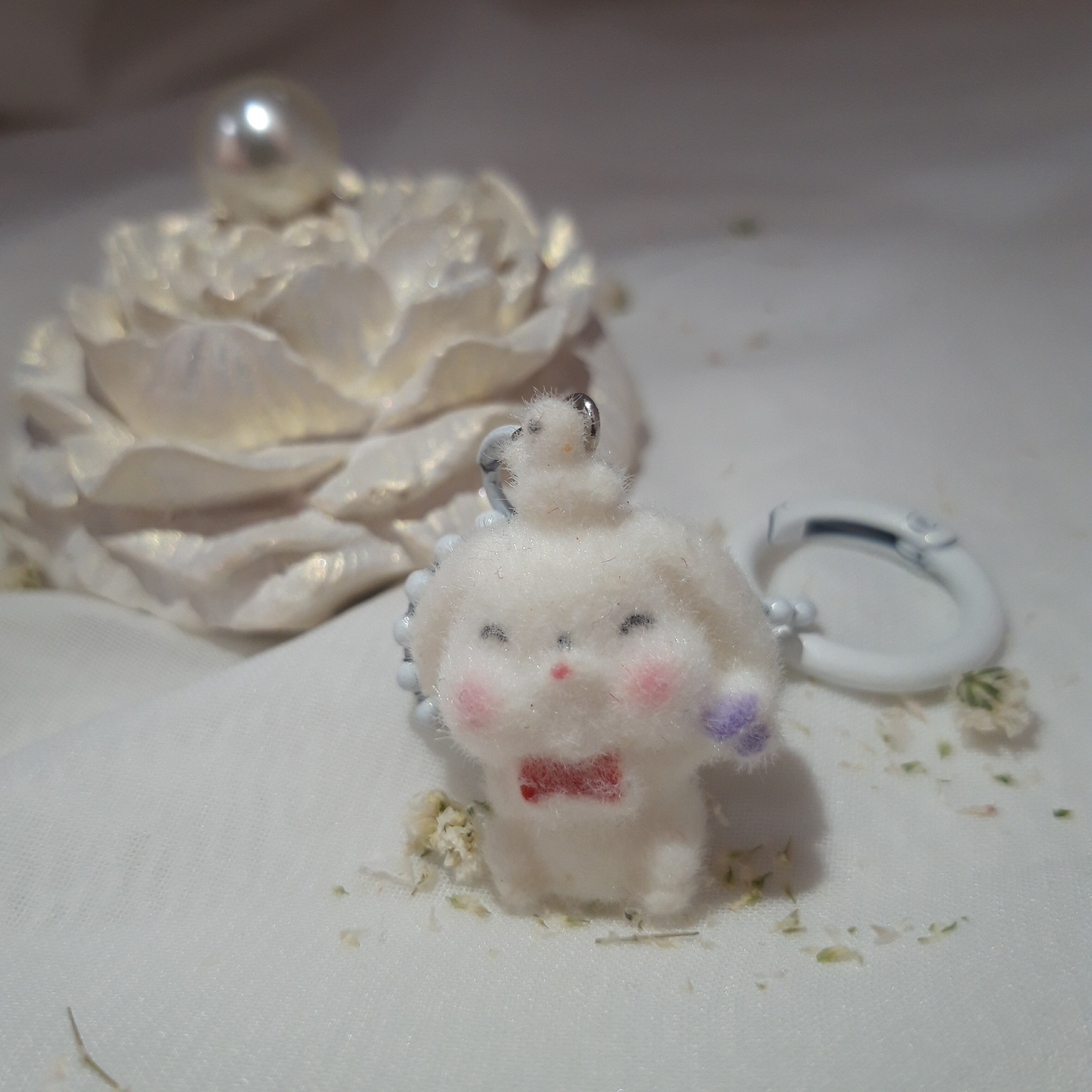 آویز کیف فانتزی عروسکی طرح خرگوش پشمالو سفید، کیوت و سبک، مناسب کیف، کولهپشتی و هدیه دخترانه.