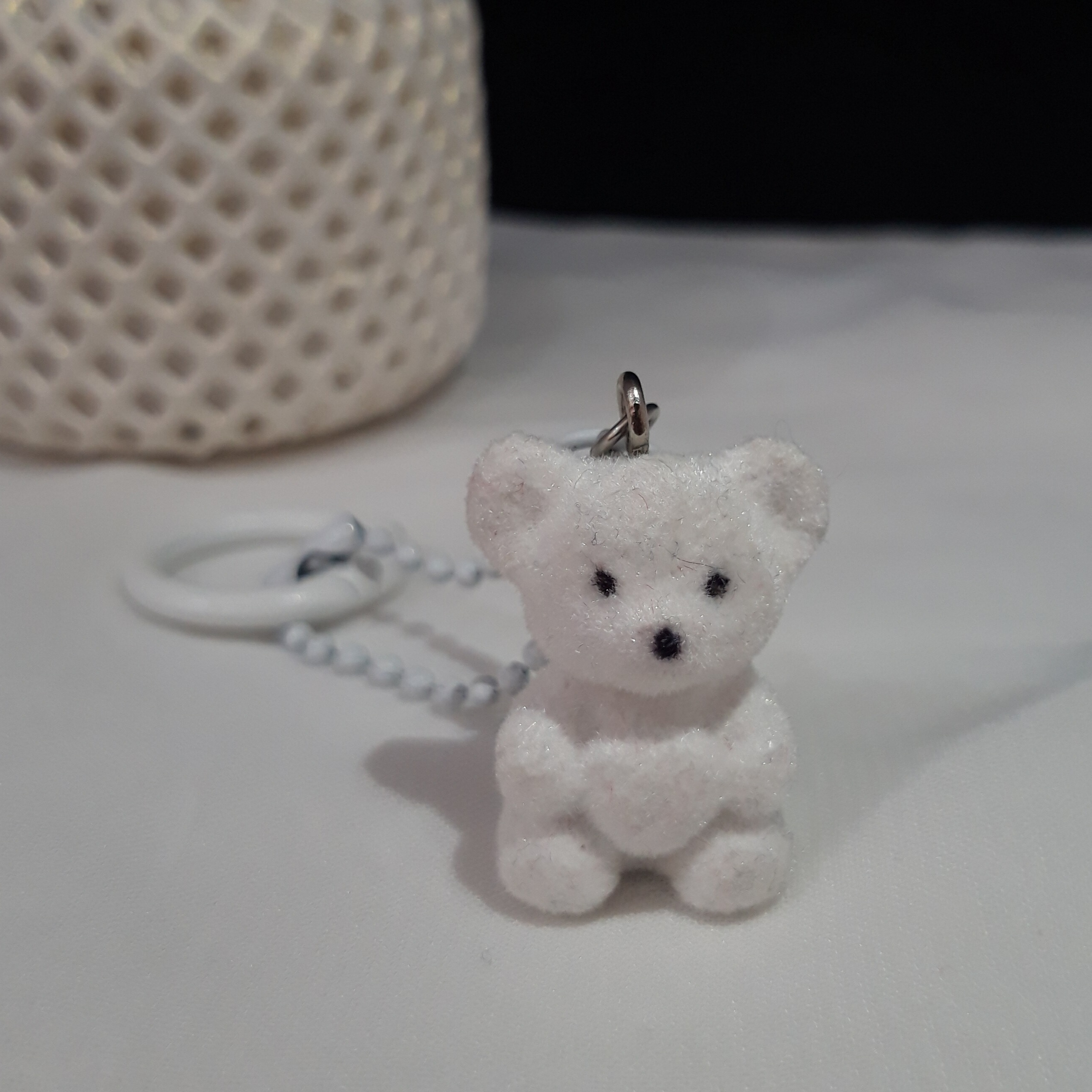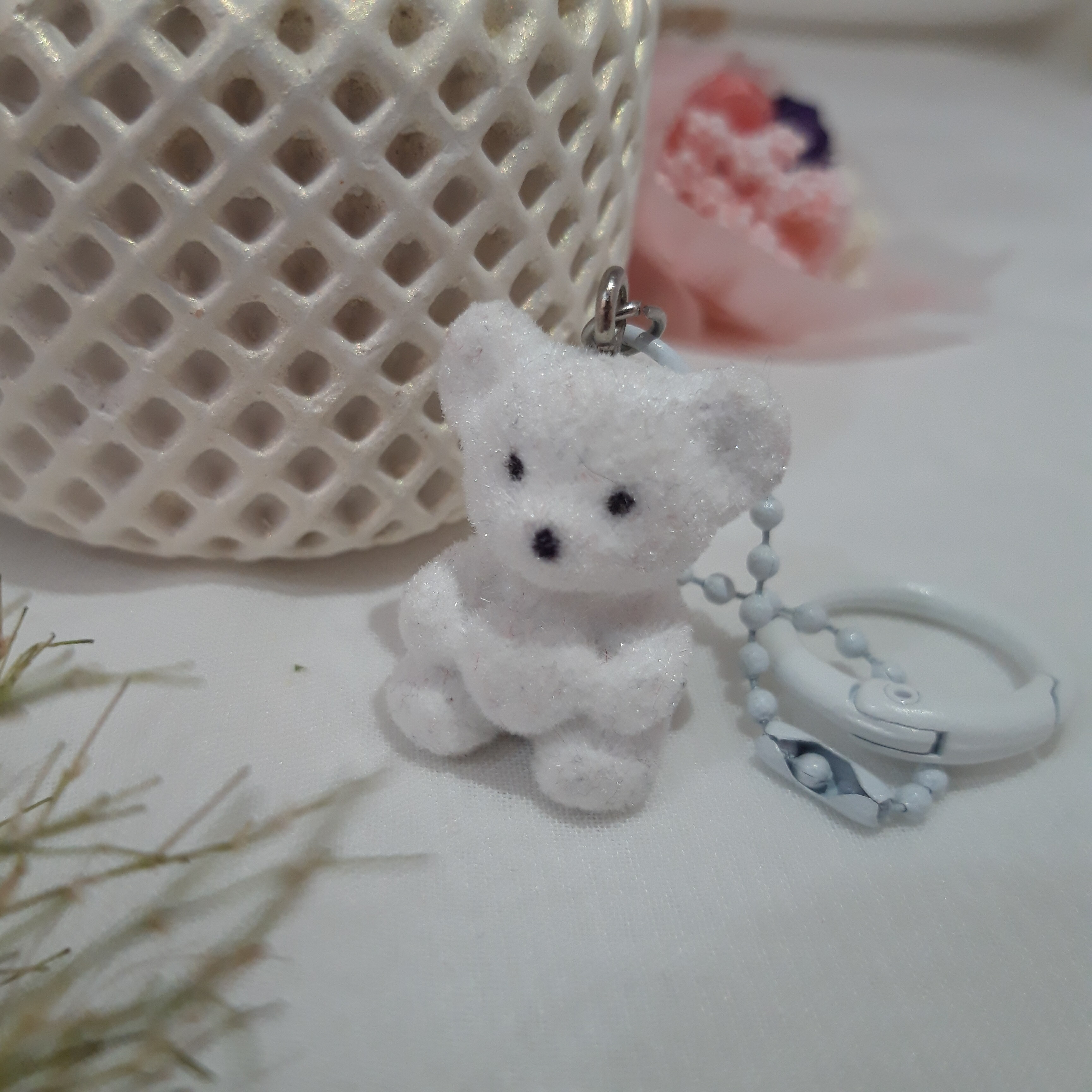 آویز کیف دخترانه با طرح خرس پشمالو سفید، مناسب برای کیف، کولهپشتی و هدیه فانتزی و سبک.