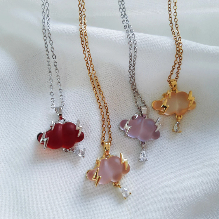 گردنبند ابر در رنگبندیهای متنوع، با زنجیر استیل و پلاک رنگثابت گزینهی مناسبی برای استایلهای فانتزی روزانه میباشد.
