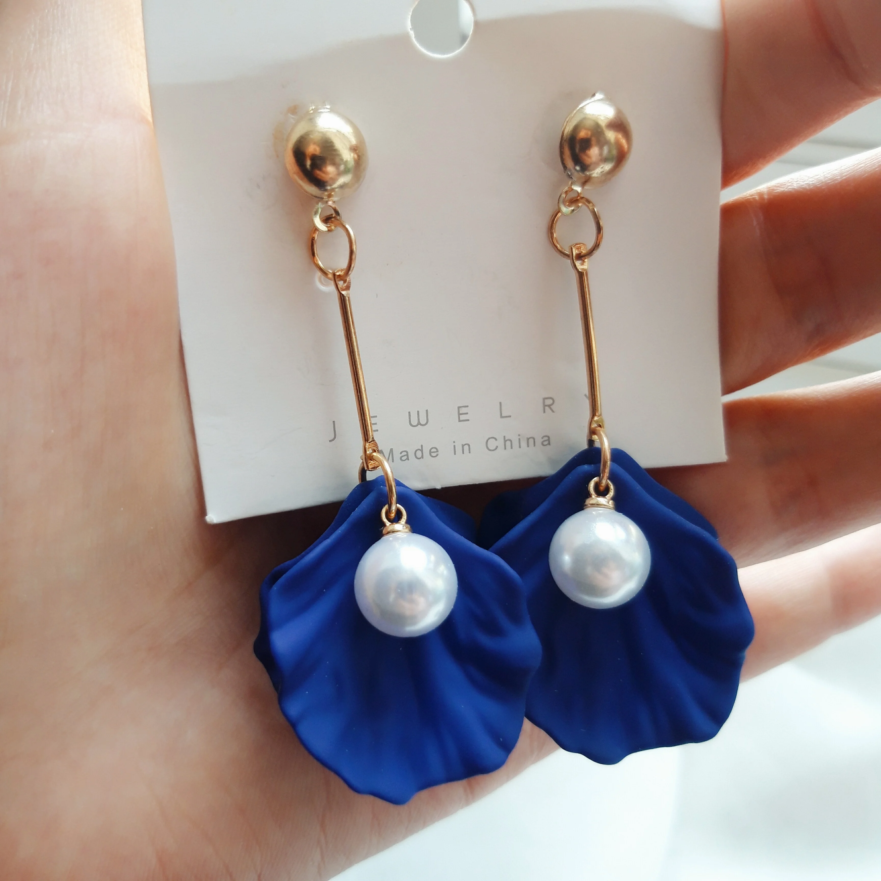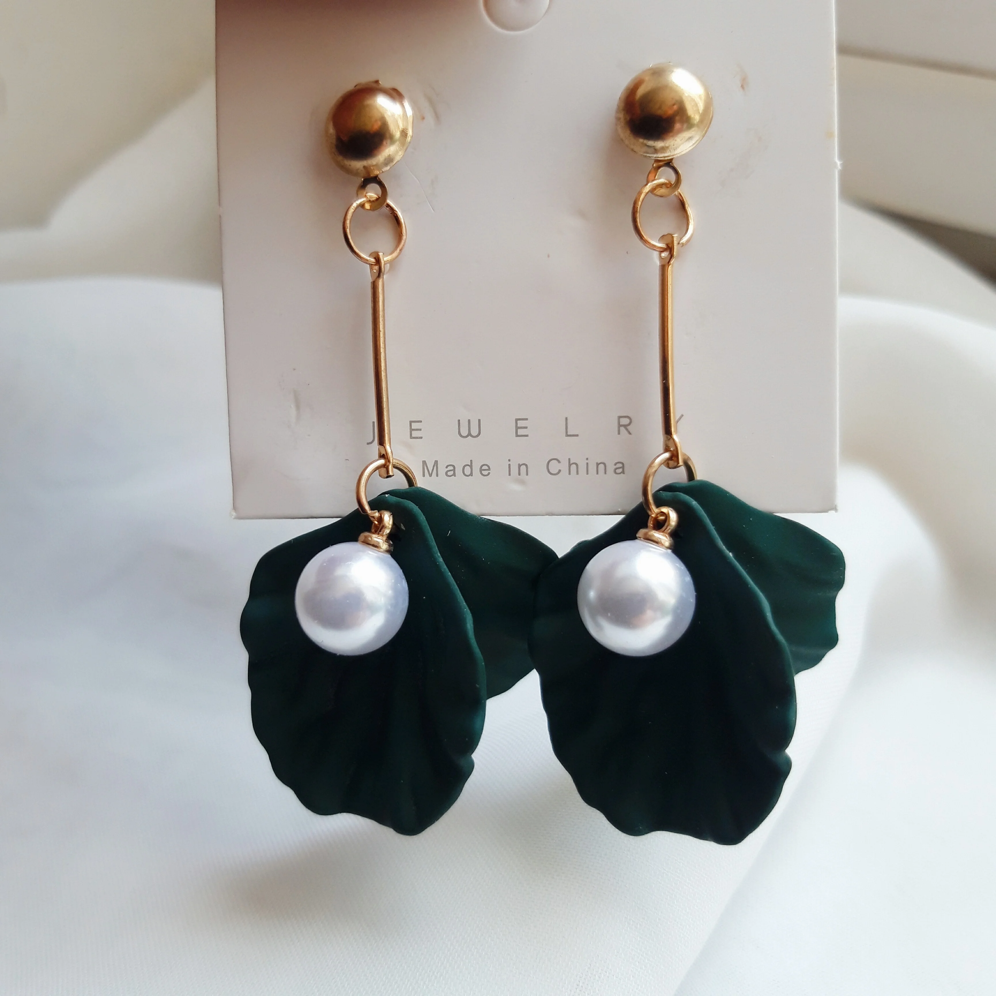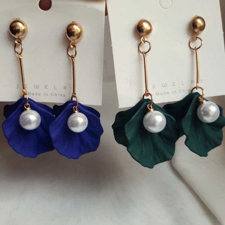 گوشواره آویزی طرح صدفی از استیل طلایی ضدزنگ، گزینهی مناسبی برای استایلهای شیک دخترانه میباشد.